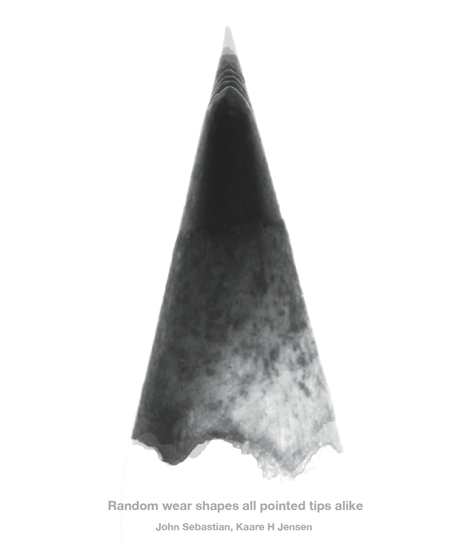 Our findings suggest that the consistent shape of these pointed tips across diverse forms is not the result of evolutionary selection but rather an inevitable consequence of random wear — a compelling example of how stochastic processes can sculpt the natural world into strikingly similar forms, reminding us that some coincidences are simply random.